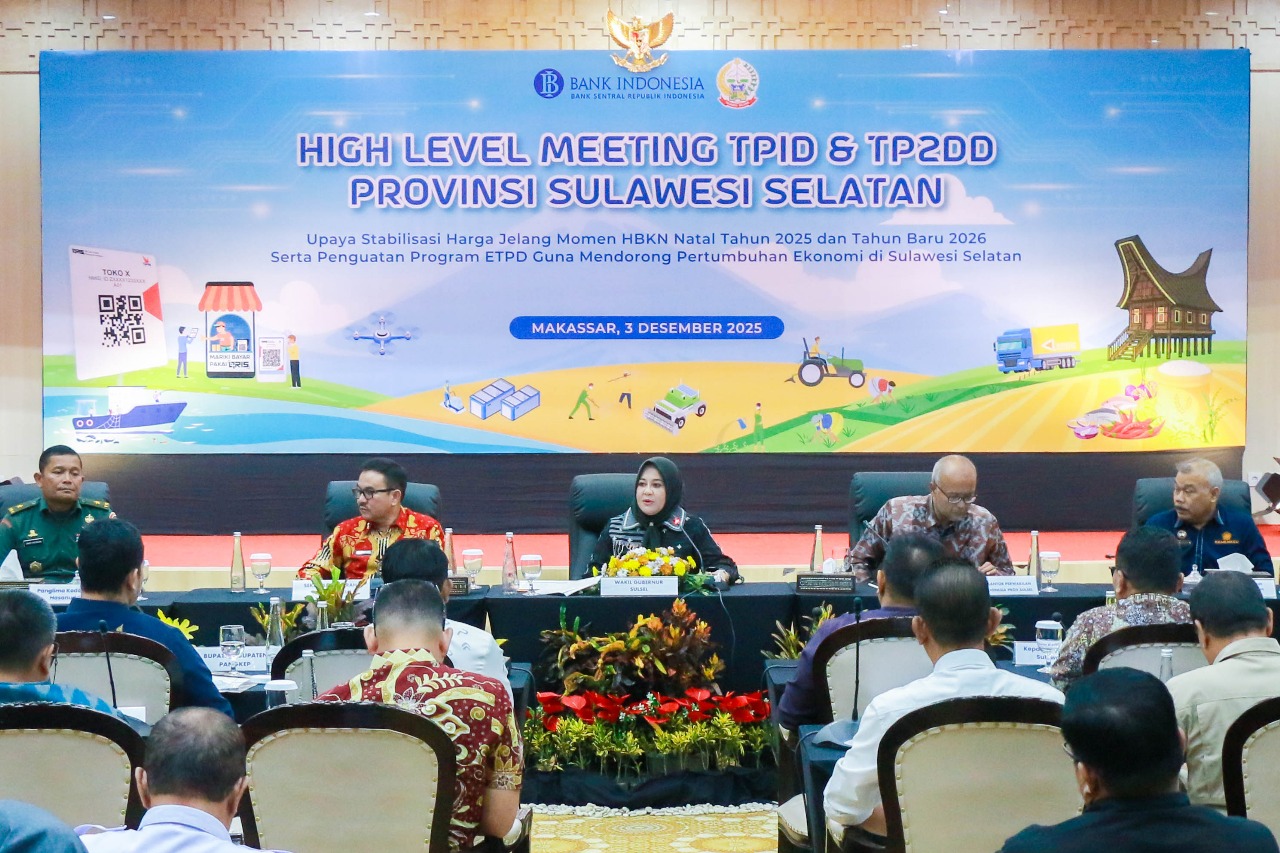 Limabelas Indonesia, Makassar – Untuk memperkuat koordinasi dalam mengantisipasi potensi kenaikan harga menjelang Hari Besar Keagamaan Nasional (HBKN) Natal 2025 dan Tahun Baru 2026, Tim Pengendalian Inflasi Daerah (TPID) se-Sulawesi Selatan bersama Tim Percepatan dan Perluasan Digitalisasi Daerah (TP2DD) menggelar High-Level Meeting (HLM) pada 3 Desember 2025 di Baruga Phinisi, Kantor Perwakilan Bank Indonesia Provinsi Sulawesi Selatan.