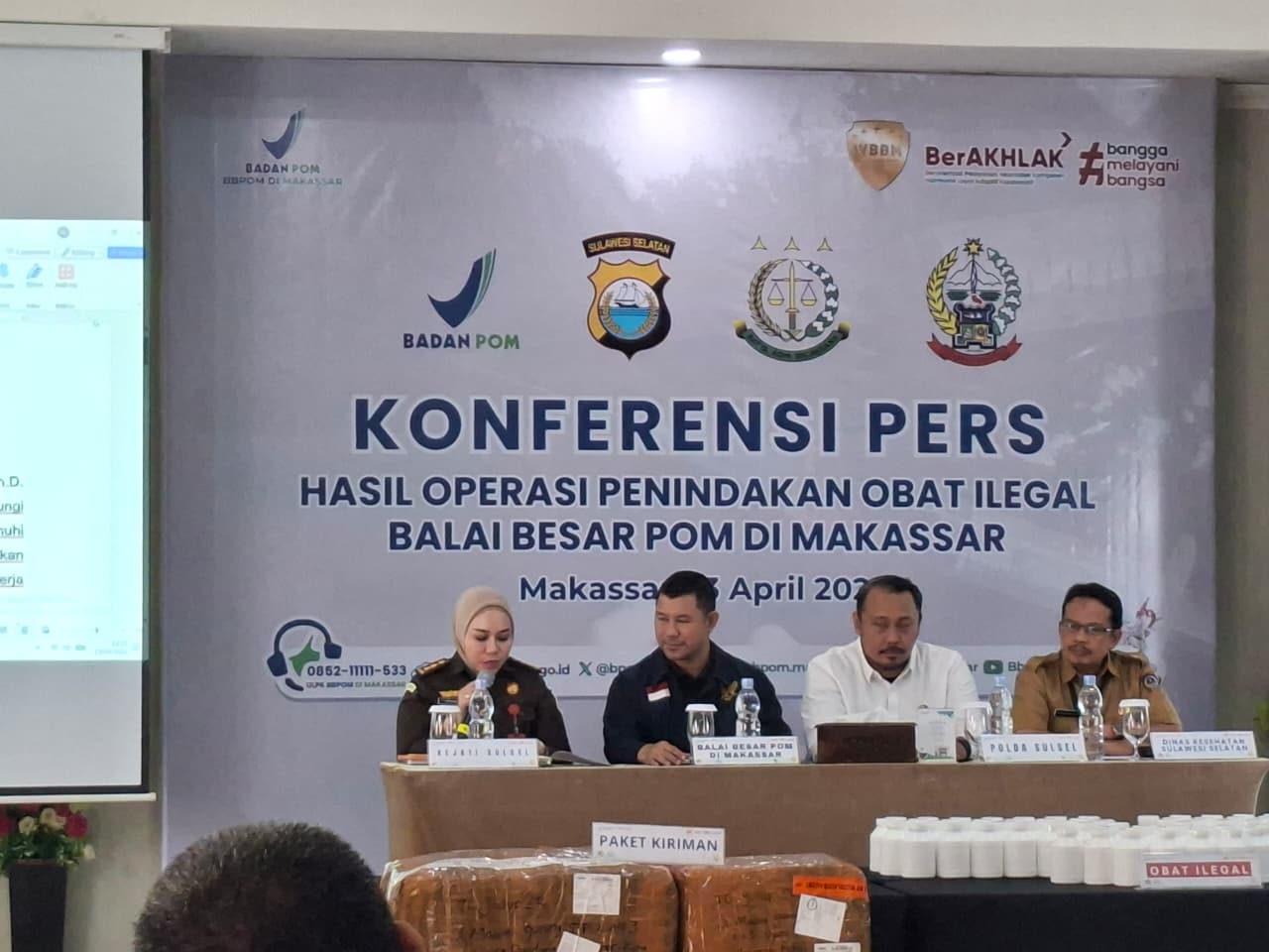 Limabelas Indonesia, Makassar, Senin (13/4/2026) — Balai Besar Pengawas Obat dan Makanan (BBPOM) di Makassar menggelar konferensi pers terkait temuan obat terlarang dalam operasi pemberantasan obat dan makanan ilegal di wilayah kerjanya.