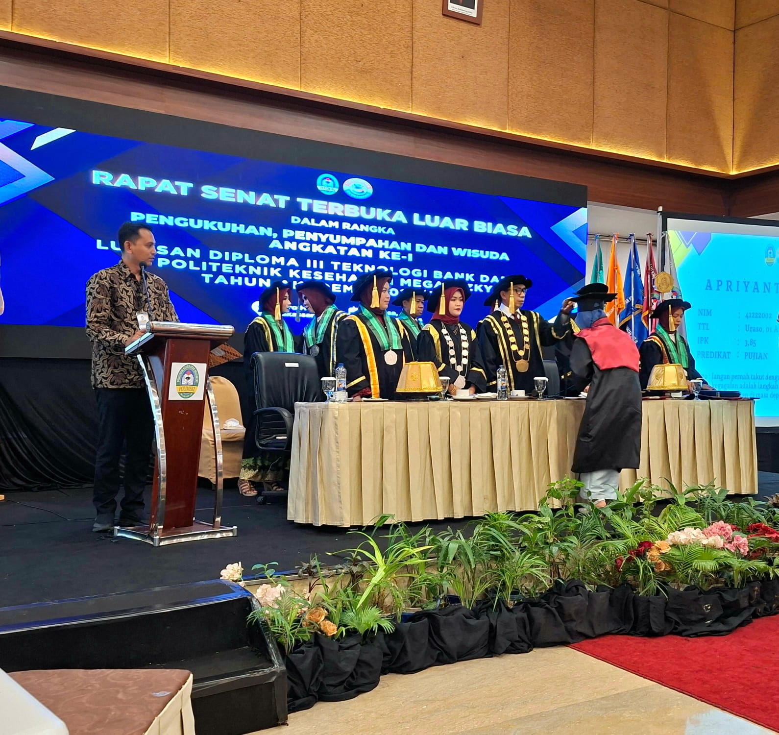 Limabelas Indonesia, Makassar — Politeknik Kesehatan Megarezky (Polimerz) menggelar Sidang Rapat Senat Terbuka Luar Biasa dalam rangka Wisuda Program Studi Diploma III Teknologi Bank Darah di Hotel Claro Makassar, Selasa (3/2/2026). Kegiatan ini menjadi wisuda perdana sejak institusi tersebut resmi berdiri pada 31 Januari 2021.