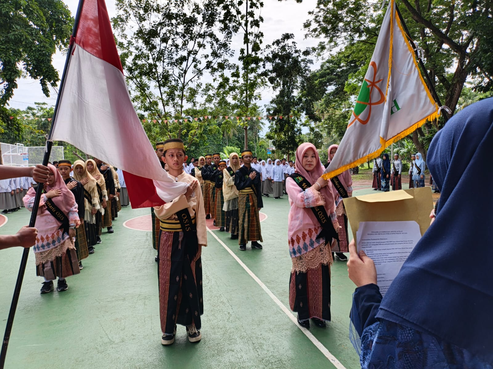 Limabelas Indonesia, Bone – Upacara pelantikan pengurus OSIS dan MPK SMP Islam Athirah Bone periode 2025/2026 berlangsung khidmat di lapangan upacara pada Senin (15/12). Sebanyak 28 pengurus OSIS baru dan 17 pengurus MPK baru resmi dilantik oleh Kepala SMP Islam Athirah Bone, Nuraeni, S.Pd.,Gr., selaku pembina upacara. Turut hadir membersamai Seluruh guru, tenaga kependidikan, dan siswa yang hadir memberikan dukungan.