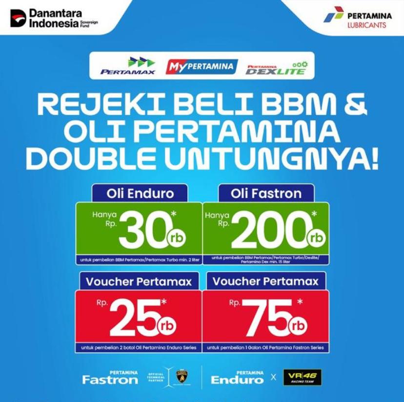 Limabelas Indonesia, Makassar – Kabar gembira bagi para pemilik kendaraan roda empat. Pertamina kembali menghadirkan promo menarik yang sayang untuk dilewatkan. Melalui program “Rejeki Beli BBM & Oli Pertamina Double Untungnya!”, konsumen kini bisa mendapatkan oli mobil premium Pertamina Fastron dengan harga spesial hanya Rp200.000 saja.