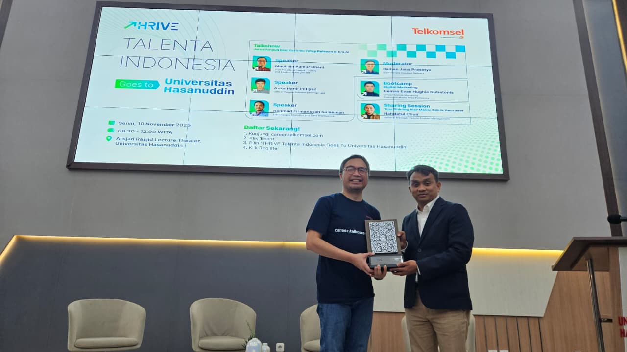 Limabelas Indonesia, Makassar, 11 November 2025 – Setelah sukses digelar di Telkom University, Universitas Diponegoro dan Universitas Gadjah Mada, THRIVE Talenta Digital Indonesia hadir di Universitas Hasanuddin (UNHAS), Senin 10 November 2025. Acara inspiratif dari Telkomsel ini, bertujuan untuk membekali mahasiswa dengan kapabilitas masa depan yang relevan di era digital dengan menghadirkan beberapa narasumber ahli dari Telkomsel. Materi yang dibawakan seputar pengembangan kapabilitas ditengah perkembangan teknologi digital seperti Artificial Inteligence (AI) dan Data Analytics.